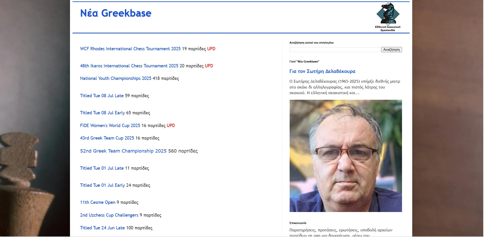 Το ΔΣ της ΕΣΟ αποφάσισε να θέσει υπό την αιγίδα της Ομοσπονδίας την εθελοντική και αφιλοκερδή προσπάθεια ομάδας γνωστών σκακιστών να συνεχιστεί το σημαντικότατο έργο του αείμνηστου Σωτήρη Δελαβέκουρα (greekbase.gr) για να μην στερηθεί η Ελληνική σκακιστική κοινότητα την γρήγορη πρόσβαση στην σκακιστική πληροφορία.