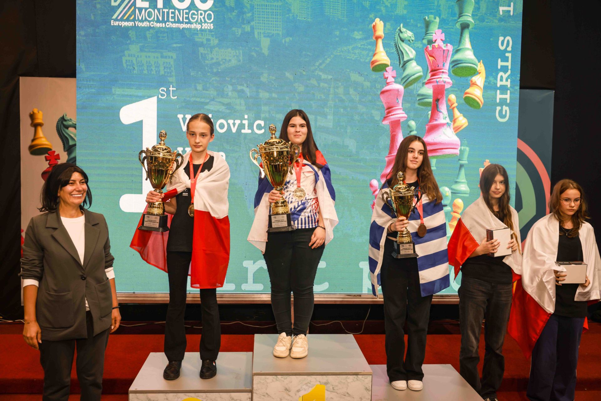 Η Ελληνική Σκακιστική Ομοσπονδία (ΕΣΟ) συγχαίρει θερμά την Ευαγγελία Σίσκου για την κατάκτηση του χάλκινου μεταλλίου στο Ευρωπαϊκό Πρωτάθλημα Κορασίδων μέχρι 14 ετών 2025 (European Youth Chess Championship 2025, Girls U14), που πραγματοποιήθηκε στη Μπούντβα του Μαυροβουνίου.